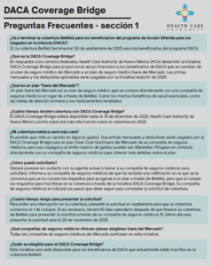 Health Care Authority (HCA) de Nuevo México creó una solución temporal a través de la iniciativa, DACA Coverage Bridge, que proporcionará cobertura de seguro médico hasta el 31 de diciembre de 2025.