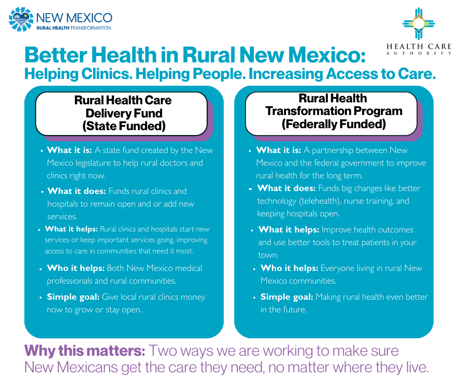 The Rural Health Care Delivery Fund (RHCDF) is a vital initiative aimed at improving access to quality health care in rural New Mexico. With $20 million available for the FY26-28 funding cycle, the RHCDF provides financial support to rural Medicaid providers, helping to offset operational costs in the expansion of essential health care services.